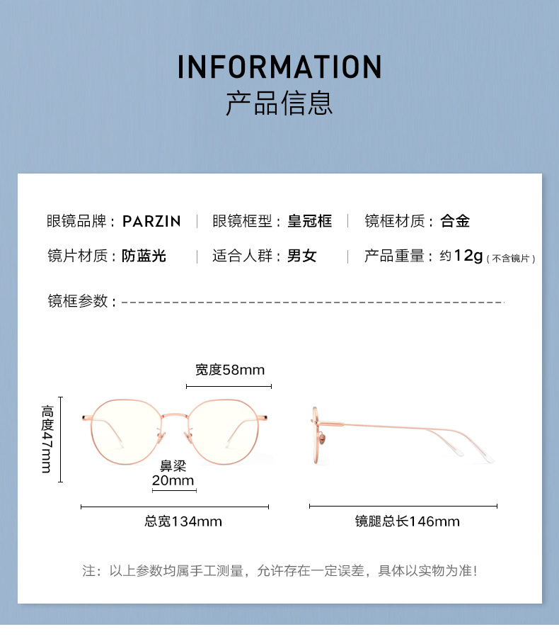 帕森简约金属眼镜架女宋祖儿同款时尚金属防蓝光护目镜15764