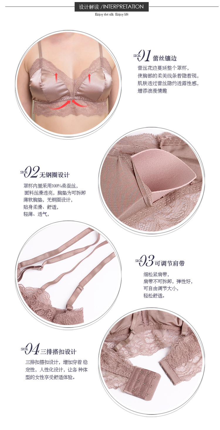 2023夏新款真丝无钢圈文胸桑蚕丝针织法式性感蕾丝内衣女薄款抹胸
